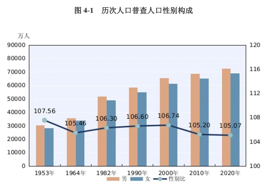 总人口性别比为105.07,与2010年(105.2)基本持平,略有降低。