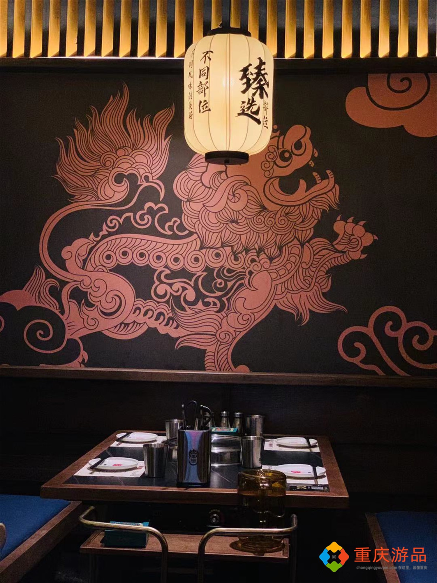 虽然“烧江南”是日式烤肉店,但在装修上却融入了许多中国元素,木制的隔断让每一桌客人都拥有了私密空间,纸灯笼里的微弱暖光看起来温馨又浪漫,整个餐厅非常适合约会和聚餐。