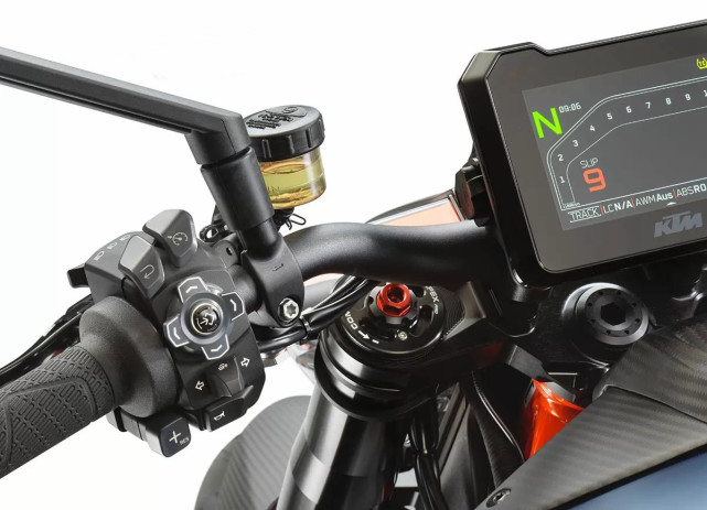 KTM多年来一直专注在LC8 V-twin平台,尽管它已经老了,但工程师们还在继续为这辆1,301cc双缸注入新的活力,这台发动机仍然是扭矩怪物,不但改善了高转速性能,还加入了下冲压空气进气口,通过重新设计的进气和排气,发动机获得了不错的提升,与2017年的更新相比,2021款KTM的1290 Super Duke R进步明显。
