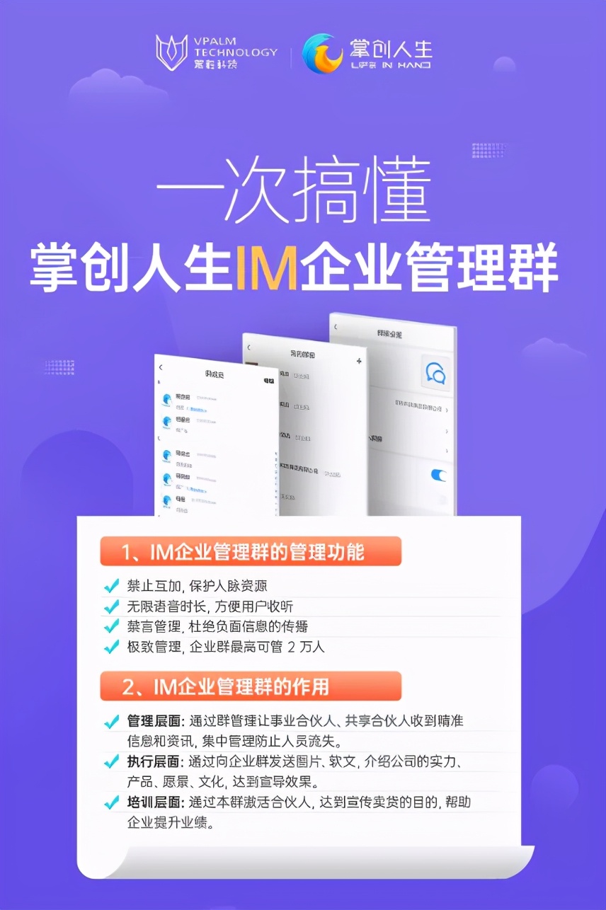 可根据用户的痛点,结合产品或者服务,做好内容规划。比如,企业商家可利用掌创人生平台的IM企业管理群功能,每天早上来一段“30秒语音”问候语,保持良好互动,还有通过智能名片推送、招募合伙人邀请、直播链接分享、商品海报分享等多种传播形式,有利于客户全面、广泛地获取有用信息的需求。企业通过各种形式、渠道不断向用户输出有价值的内容时才会有源源不断的流量。