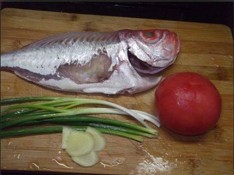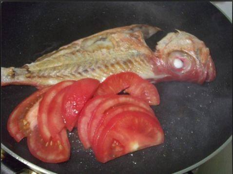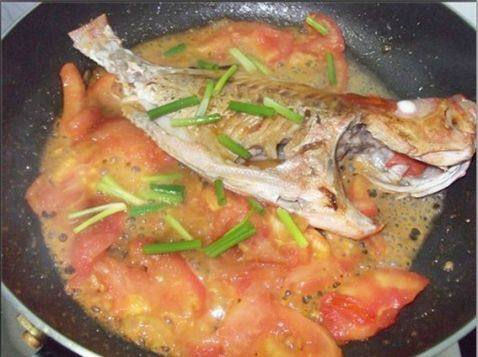 1 大眼鸡一条,番茄一个,姜片、葱、糖,盐,油适量