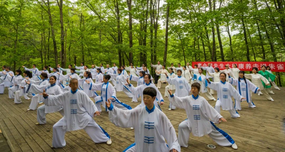 为了让太极文化与森林康养实现完美契合,进行"有氧森呼吸,天然心享受"。朱雀国家森林公园联合华岳太极文化有限公司共同开办太极拳高级研修班。5月13日,惠合同先生携全国各地百余名太极拳爱好者走进森林康养基地——朱雀国家森林公园。