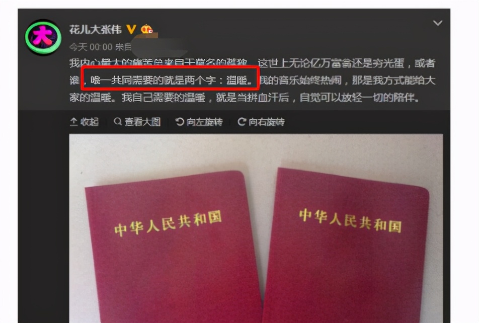 第二天整点,大张伟发文疑默认了恋情,感慨自己需要的温暖,就是在血拼之后,自觉可以放轻一切的陪伴。