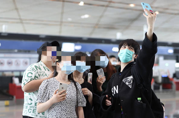 在现场,大张伟一直跟在老婆兼经纪人刘迎身后听从“安排”。看到现场接机的粉丝,大张伟热情邀请大家拍照。