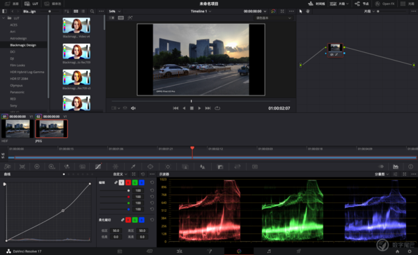 我们使用DaVinci Resolve对10bit的HEIF和8bit的JPG同参数简单拉一下曲线,而后输出。