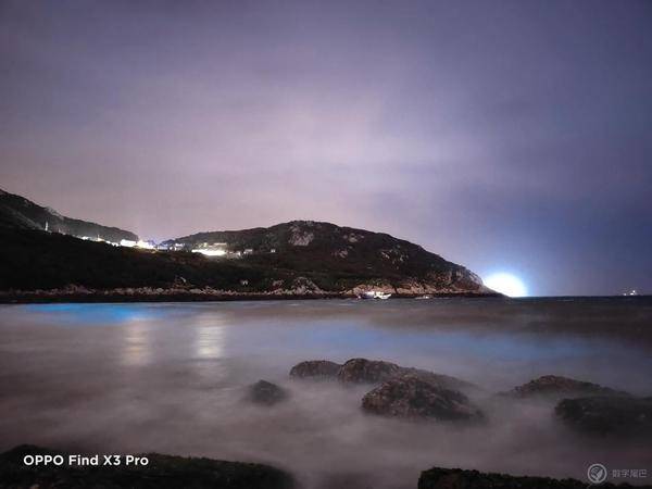 同时,OPPO手机原生拍照app中的专业模式,也能够让我们拍到平时手机自动曝光很难拍到的风景。我在五一去了福建平潭拍摄了“蓝眼泪”——这是一种夜晚藻类发光产生的视觉景观。不用我说大家也知道光线其实是非常微弱的。