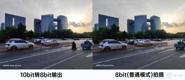 我们给到一个普通的8bit和10bit同场景拍摄,首先我们将10bit转换为8bit同框预览一下。这个情况下,目前的旗舰手机在直出图片时是极少会出现色彩断层情况的!