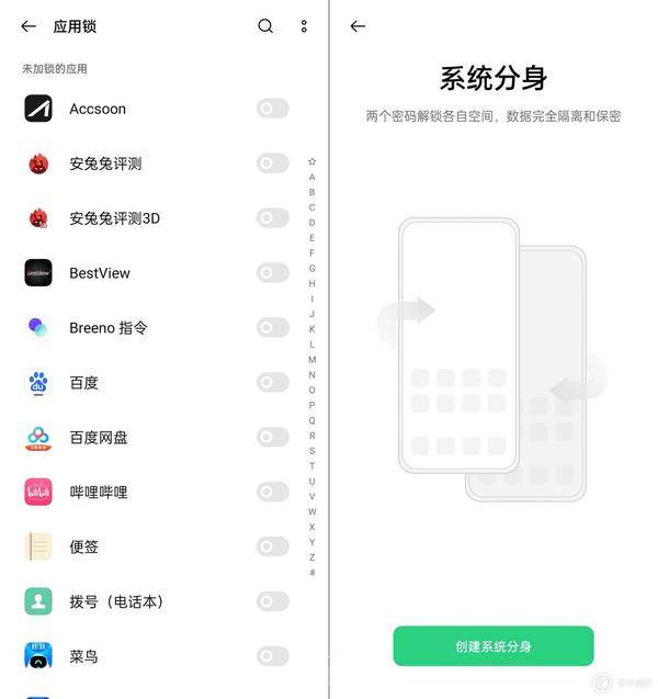 同时,系统分身可以让一个手机产生多个独立的空间,数据互不干扰。并且可以通过不同的指纹或者锁定密码,进入对应的系统,将工作和生活彻底分开,却不需要携带两台手机,这一功能可谓非常照顾用户体验了。