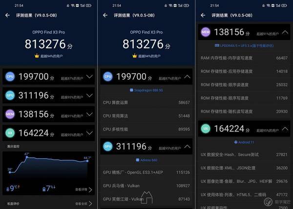 OPPO Find X3 Pro采用高通骁龙888处理器+LPDDR5+UFS3.1的硬件配置,手中这台为12G+256G配置。