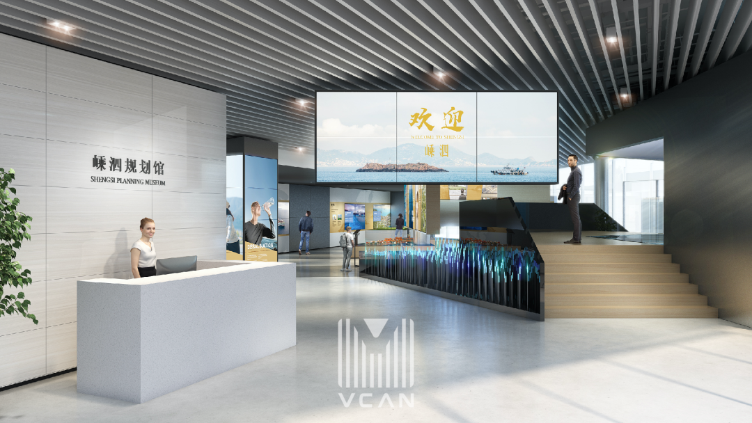 嵊泗规划馆是⼩镇本岛的综合政务商务中⼼,是“感受嵊泗发展,了解嵊泗未来,参与蓝⾊⽣态海岛建设”的窗⼝,为政务接待与商务合作提供⼀个舒适的交流洽谈空间,是嵊泗产业孵化起点。