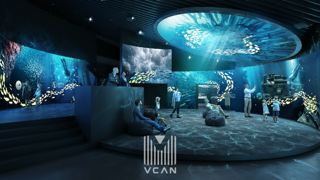 海洋⽂化体验馆是嵊泗⽂化旅游IP打造与展馆结合的全新组合,通过⼤⻩⻥王⼦的故事,体验海岛⽂化的多个⽅⾯。打造最具有嵊泗特⾊的智慧海岛体验馆,领略科技背后对海洋⽂化的探索与保护。未来将成为嵊泗宣传的话题性现象和岛⺠精神⽂明与科技创新的综合性展示。