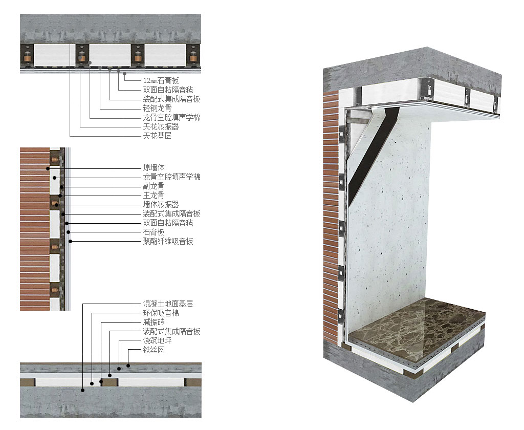 酒店:客房的地面做了专业的减震隔音结构,原理等同于浮筑楼板,真正的实现“地顶分离”。