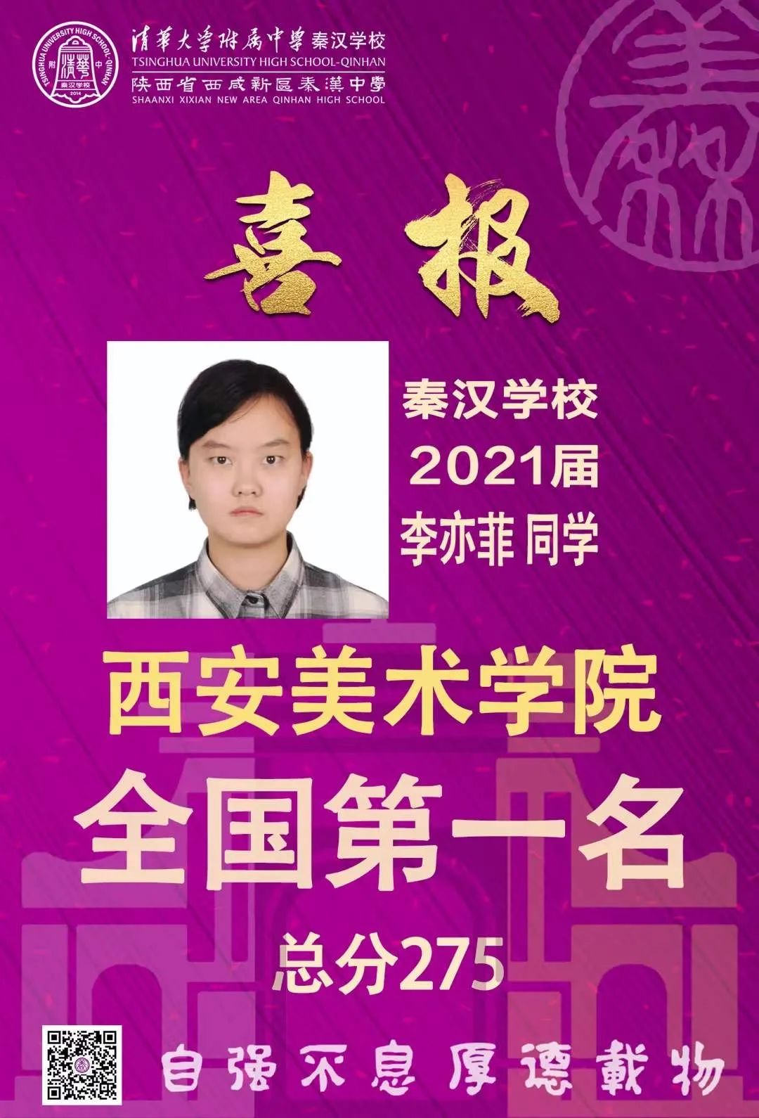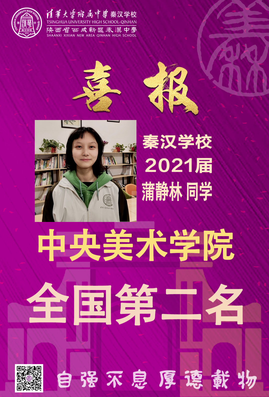 2021年,蒲静林同学紧跟学姐的脚步,一举夺得中央美术学院全国第二名,数名同学包揽顶级艺术院校三甲;清华美院、中央美院、中国美院三大美院拿证人数占我校美术生人数的44%,在陕西省乃至全国独占鳌头。