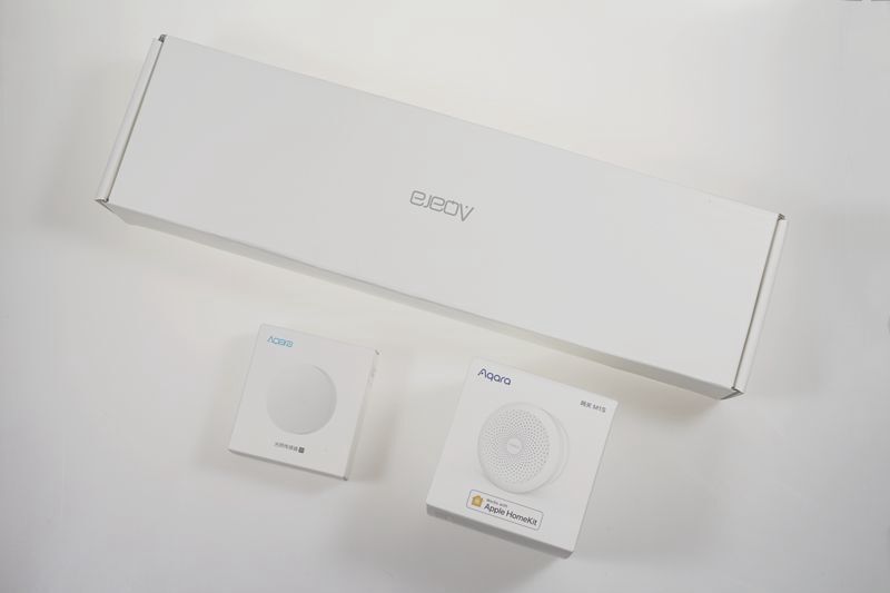 下面就让我们走入这神奇的时刻吧,让我们看看绿米aqara智能窗帘为我们生活增加多少方便,我们都知道智能家居有多种玩法,购买了绿米Aqara智能窗帘电机(ZigBee开合帘版)、Aqara网关M1s、Aqara光照传感器 T1,包装盒都采用了白色设计风格,简约大方,而且包装上面也有产品的渲染图。