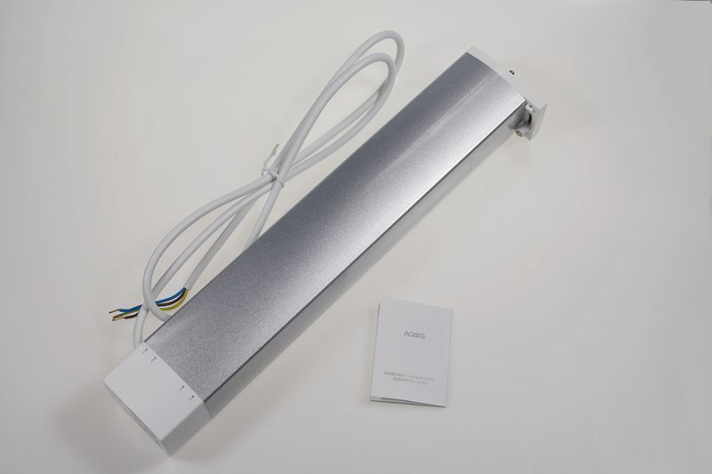 Aqara智能窗帘电机:包含主机×1,说明书×1,插座×1,有意思的是主机上面的三根线是预处理状态,后面我会讲到为什么会预处理状态。