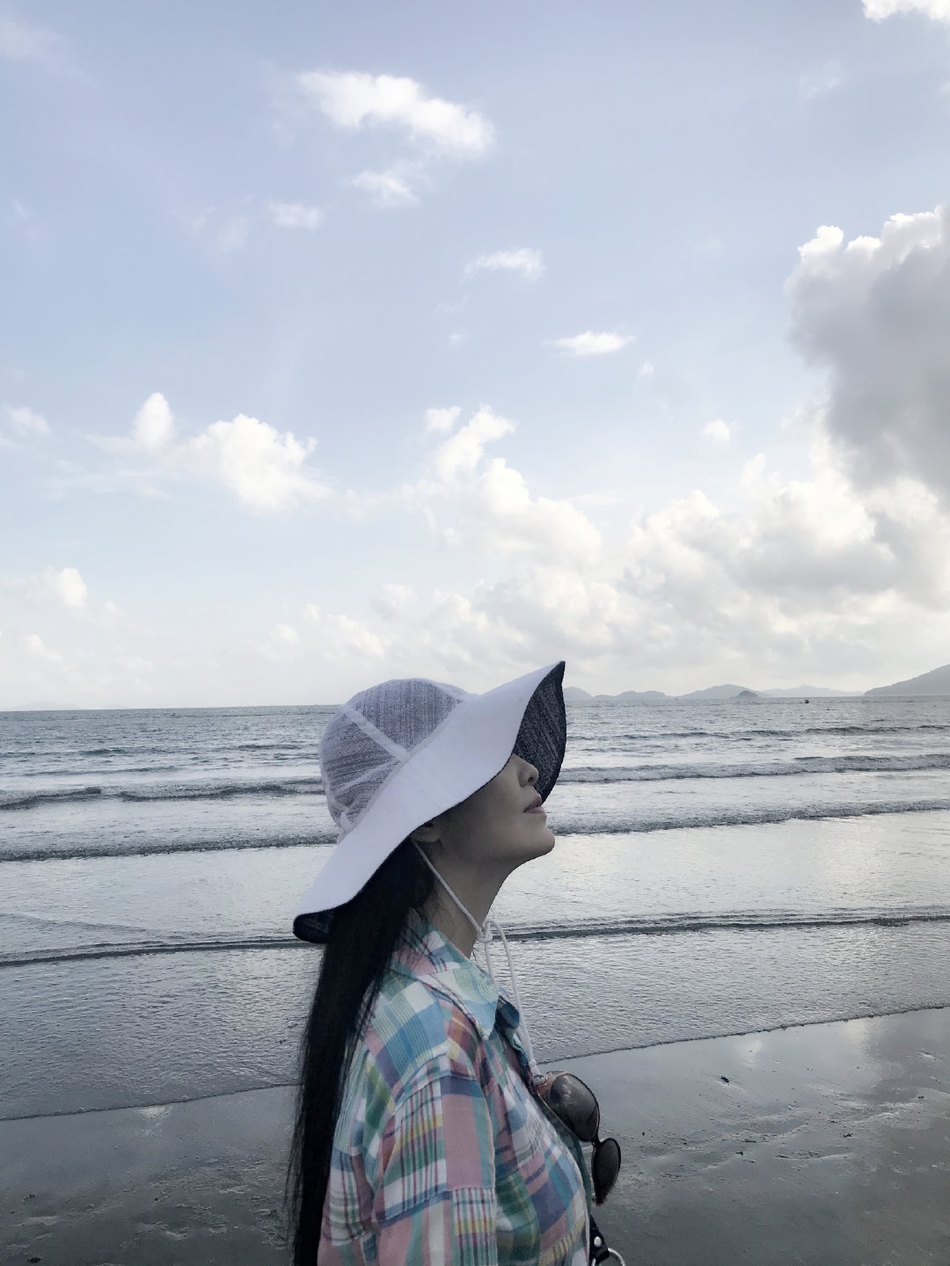 13日,周慧敏工作室在微博分享一组看海美照。