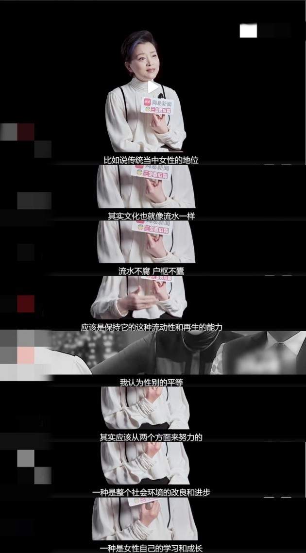 之后杨澜又谈起中国传统文化的传播,说传媒人在谈论传统文化时,要取其精华去其糟粕。比如传统观念中的女性地位。她觉得性别的平等需要社会与女性个人两方面的努力。