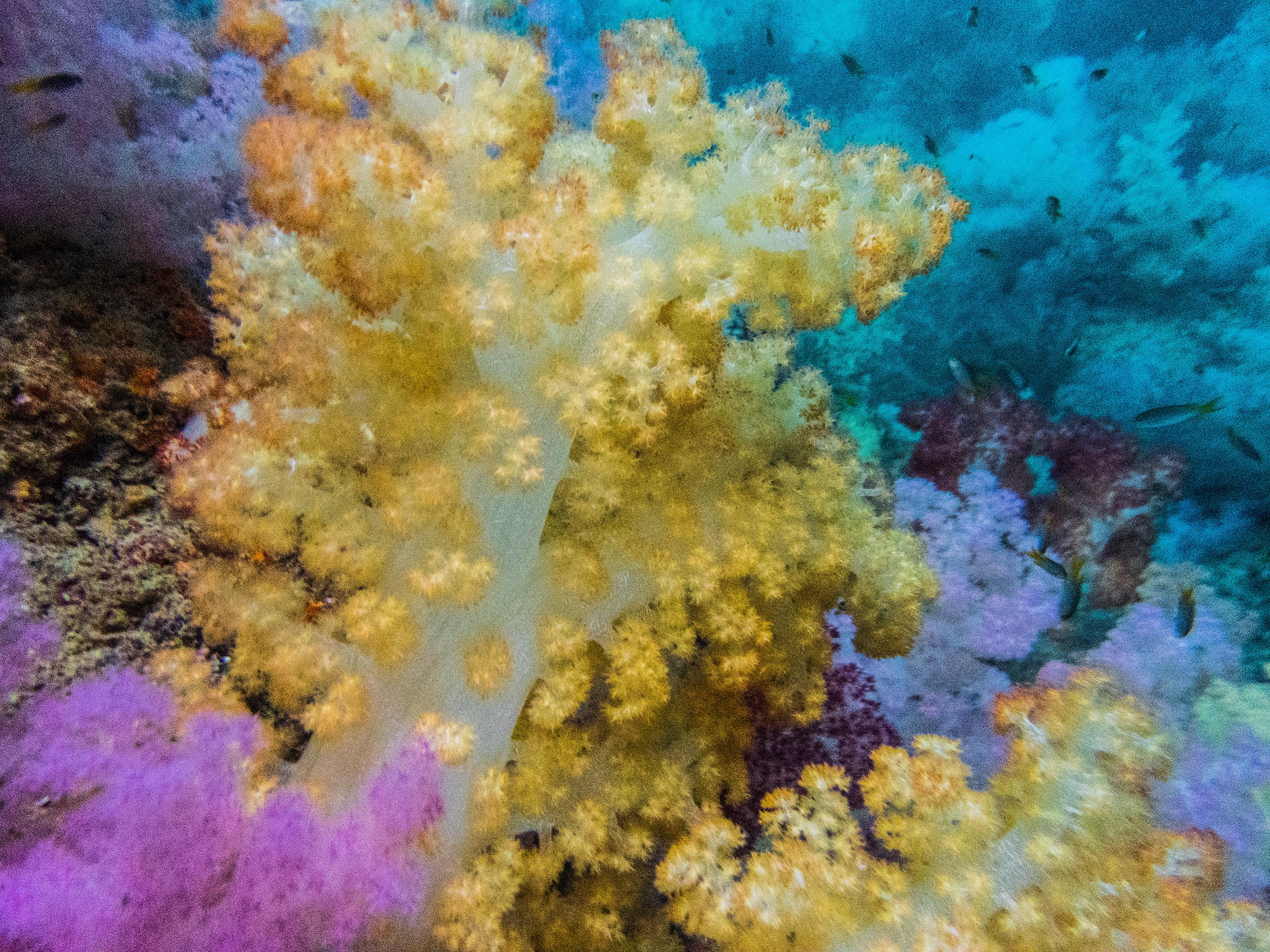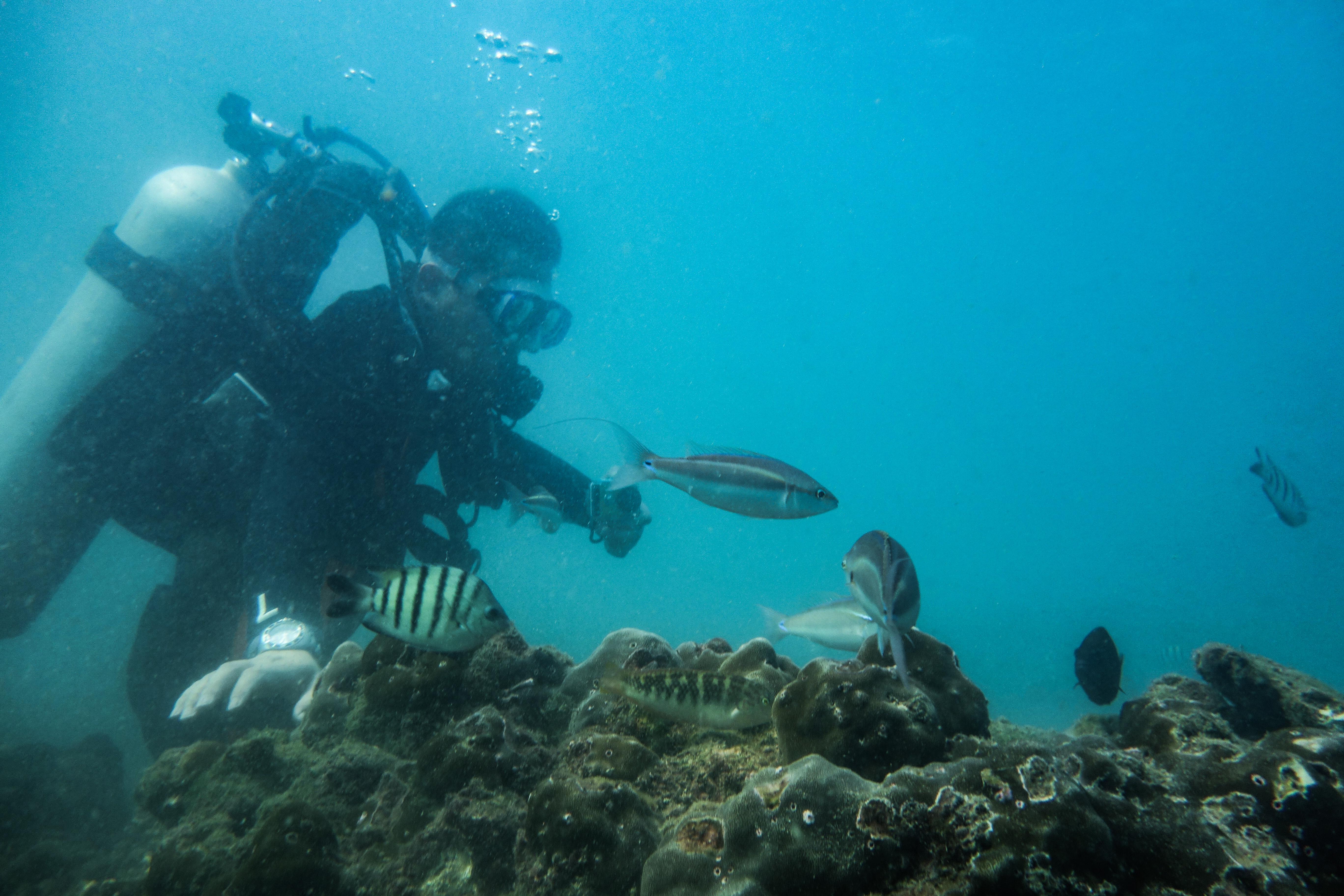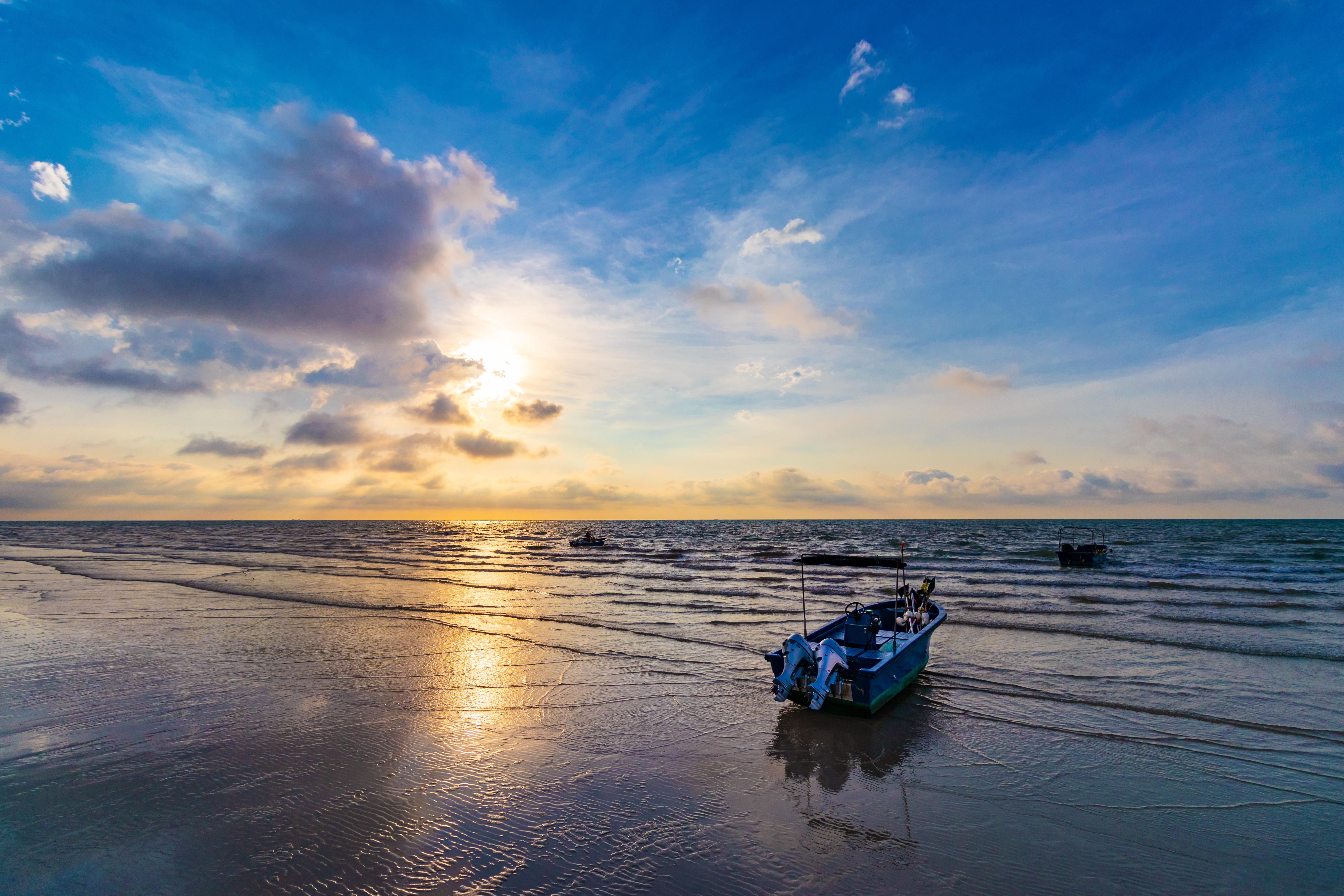 碧海、蓝天、白云、树林、渔船、躺椅、遮阳伞·······构成了一副悠闲惬意的岛国风情画卷。天气晴朗时,海水清澈可见底,远处珊瑚群婀娜多姿的身影若影若现,也可以穿上潜水服,跟随教练去探索神秘的海底世界。