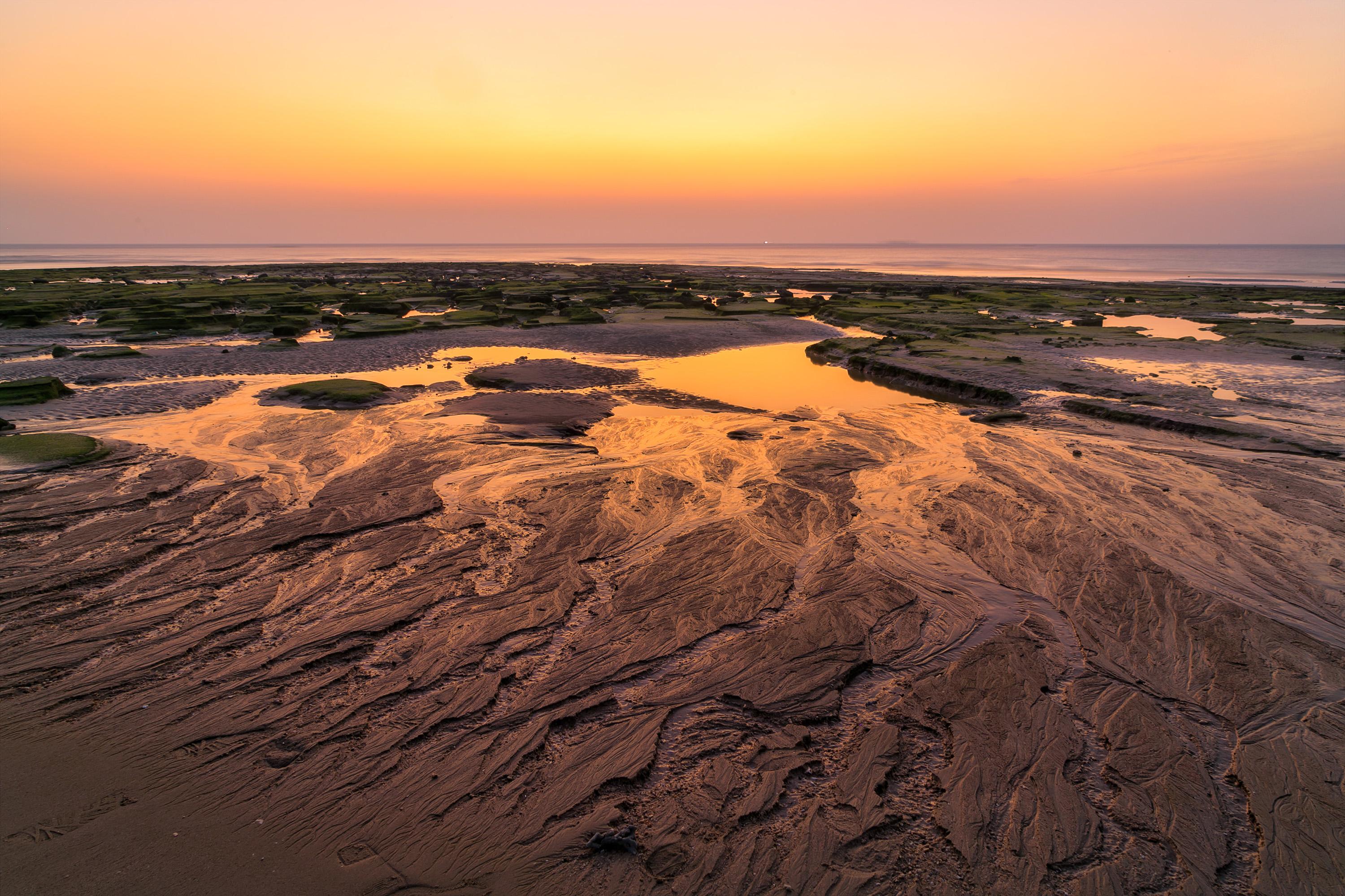 退潮后,大片的海蚀平台开始向我们显现它的真面目,经历过岁月和海水的洗礼,一幅幅印象派艺术画卷就在我们眼前。
