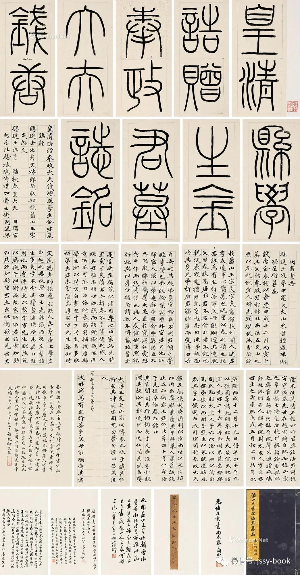 1.此册梁同书所书金氏墓志,撰文者王宗炎,篆书墓盖为孙星衍,皆称一时之选,故宝巽跋赞为“三绝”。