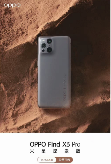 根据两日前 OPPO Find X3 Pro 火星探索版的曝光海报显示,OPPO Find X3 Pro 火星探索版与之前发布的 OPPO Find X3 Pro 的最高配版的配置是一样的,拥有 16GB 的内存和 512GB 的储存,该机将限量发售。在外观方面,OPPO Find X3 Pro 火星探索版的外观设计和标准版类似,背部采用一体化流线曲面机身,在镜头处使用了一体化“环形山”设计,这种设计制作工艺难度很高,但辨识度也非常高。
