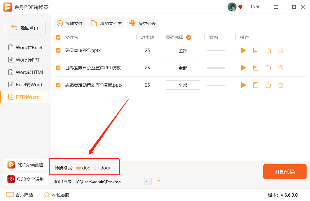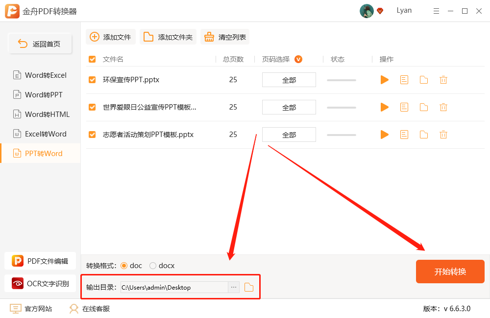 第五步、设置输出目录后,点击“开始转换”;