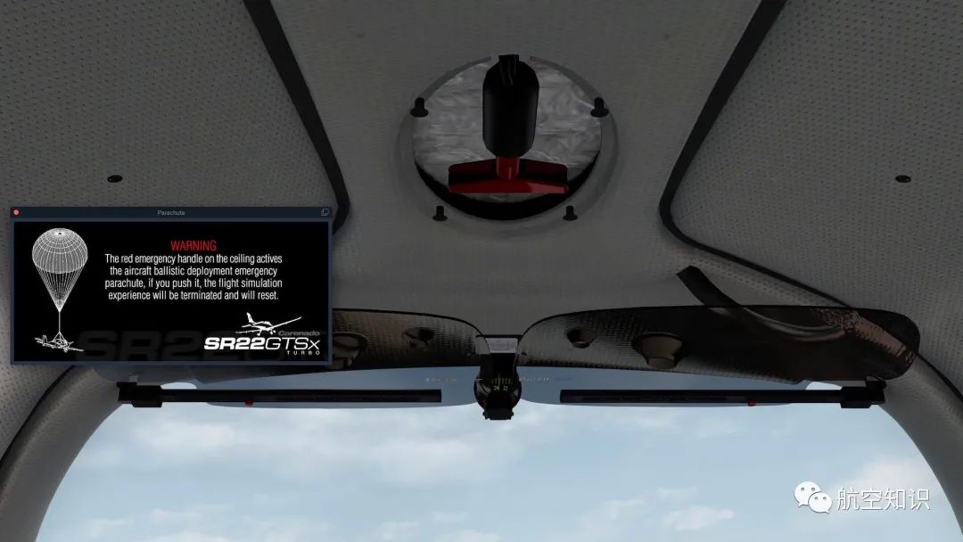 一旦在空中出现紧急情况,飞行员拉出驾驶舱头顶面板上的红色CAPS手柄,降落伞存储舱里面由固体燃料带动小火箭即会弹出。
