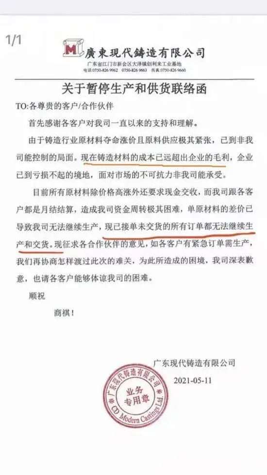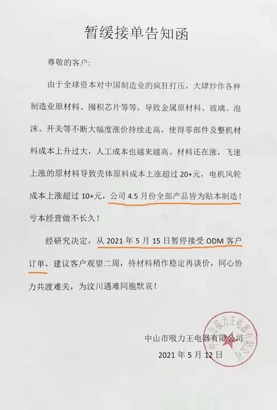 已接单但未交货的也都无法继续生产,因为成本已经远超出企业的毛利。