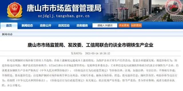 就在5月13日晚间,唐山市场监管局等三部门约谈全市钢铁生产企业,要求自觉维护市场价格秩序。