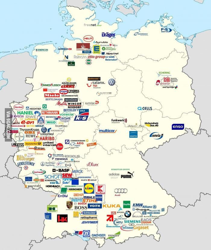 ▲德国品牌分布图,西部明显多于东部,东部仅有柏林比较发达
