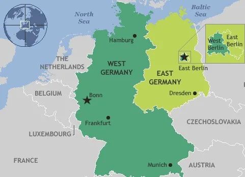 ▲分裂的德国成为了冷战双方对垒的前线,东西德也分别成为了华约、北约成员国
