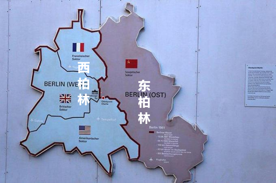 德国投降后,被美苏英法四国按计划分区占领,作为德国心脏地区,柏林也逃不过被盟军分割的命运。冷战开始后,德国与柏林身不由己地被这四大占领国卷入其中。