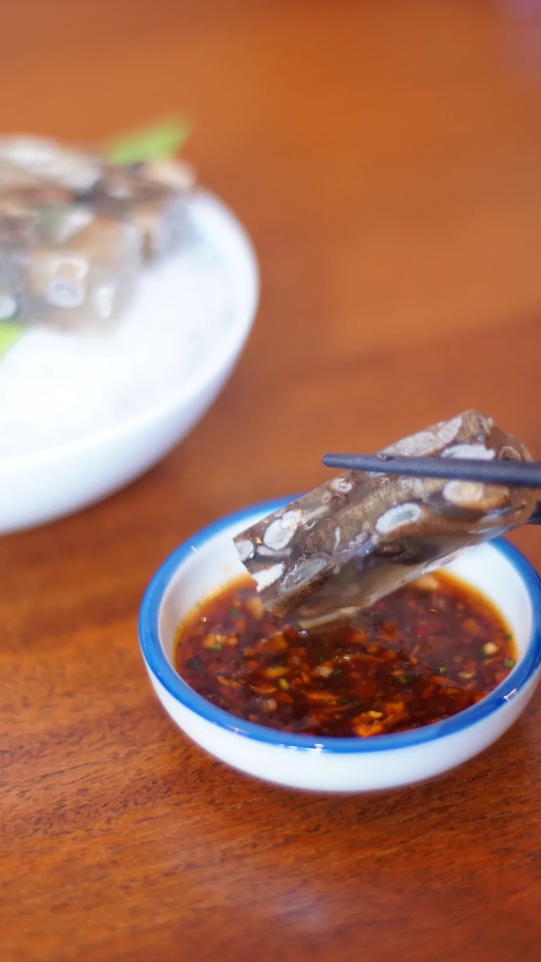 现在才能理解一点福建人耳熟能详的闽南语歌曲:“土笋冻呀土笋冻,最最好吃真正港(正宗),天脚(底)下,笼(全)都真稀罕,独独咱家乡出这项...酸醋芥末芫菜香,鸡鸭鱼肉阮(我)都不稀罕,特别爱咱家乡土笋冻,哇,哇,想做土笋冻”。我也开始明白朱家鳞老师急得直跳脚。“我就觉得现在的土笋冻根本就是在败坏厦门土笋冻的名声,这个就是厦门鼎鼎大名的土笋冻不过尔尔,真的不好吃。我差不多把厦门所有的土笋冻吃过了,只有阿德的还好一点,也是因为说他肯下多的土笋。他同样是没有把皮去掉,海鲜大叔就是找的阿德,其实也是养殖的。”