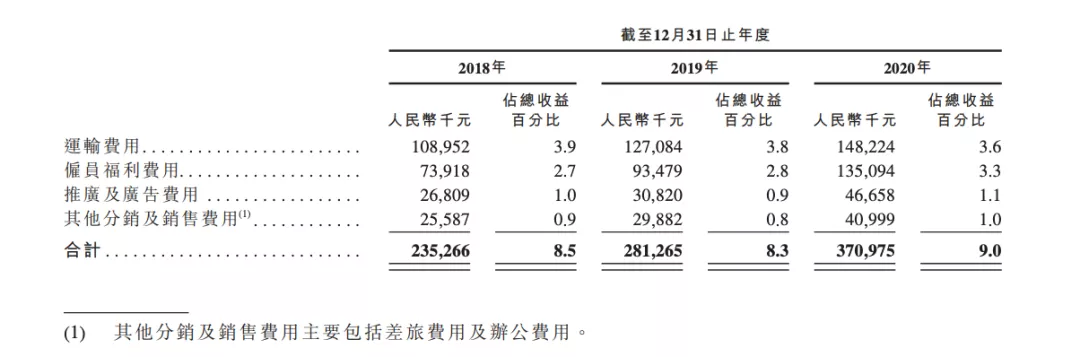 2020年,卫龙的推广及广告费用,仅有4600余万,占总收益百分比为1.1%,且过去数年均维持在1%左右的水平。