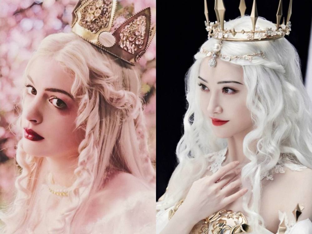 在近期,景甜的一条拍摄花絮释出,花絮中的她戴上了轻盈飘逸的白发和皇后冠冕,既高贵又典雅,这不就是我们熟知的爱丽丝梦游仙境里的白皇后吗?安妮海瑟薇饰演的白皇后,其优雅、仙气的气质以及曼妙的身姿已经深深地刻入了我们的心里,谁曾想景甜cosplay的白皇后造型半点不输安妮海瑟薇,谁看了景甜的白皇后造型不说一声这是“原型本型”?