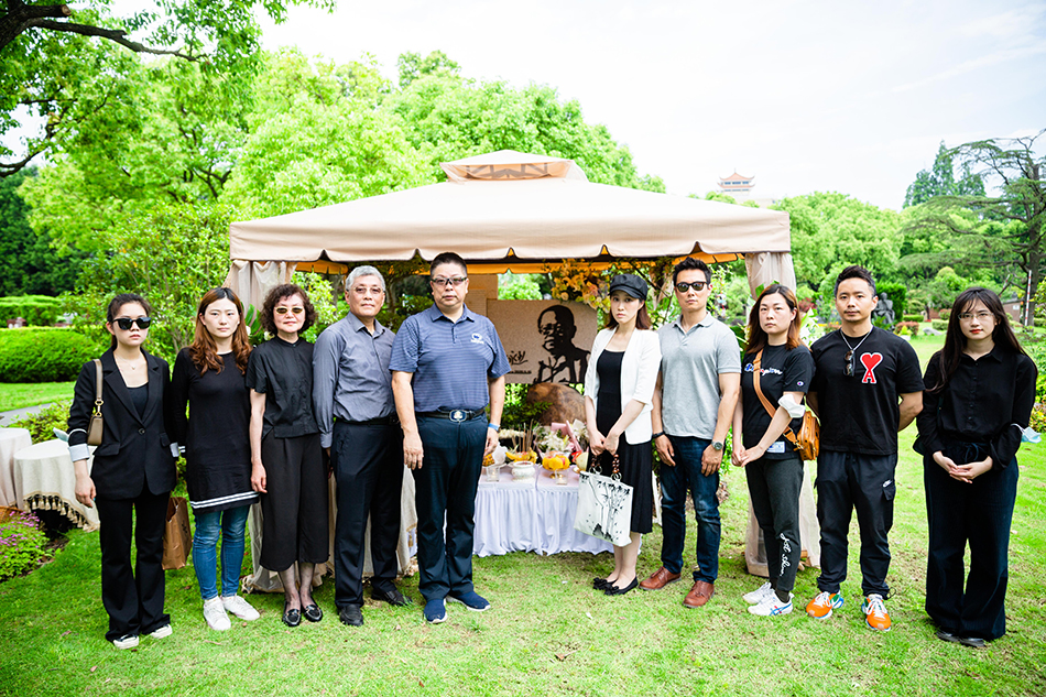 叶永烈落葬仪式现场 本文图片均为上海福寿园提供2021年5月15日上午,著名科幻作家、科普作家、纪实和传记文学作家叶永烈落葬仪式在上海福寿园艺博苑举行,叶永烈长子叶舟及其至亲为他送行。