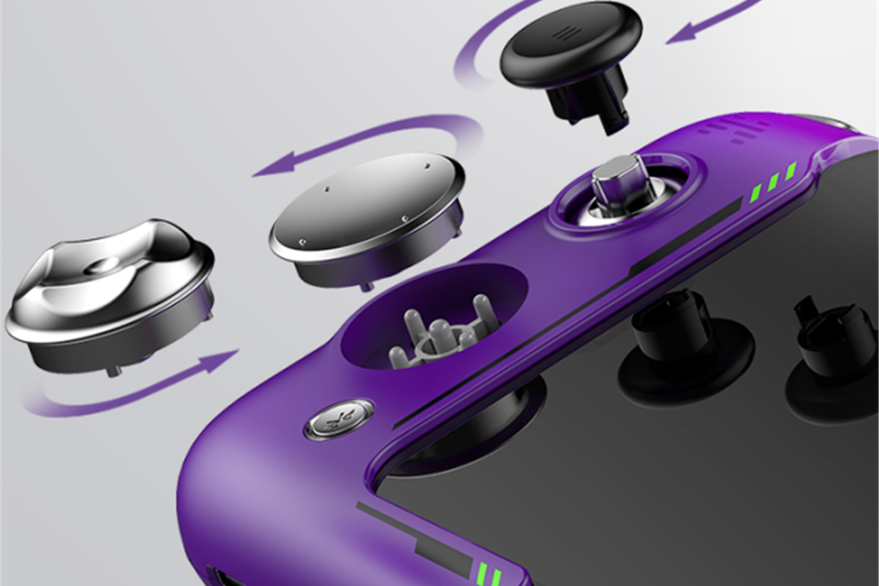 采用机械按键的北通G2组合手柄,按压时能够享受到清脆、快速的反馈速度,能够高度还原端游般的操作体验。对于不同游戏的不同操作需求,北通G2的摇杆和方向键均采用了模块化组件设计,而且最方便的是摇杆和方向键都是可以自由更换。
