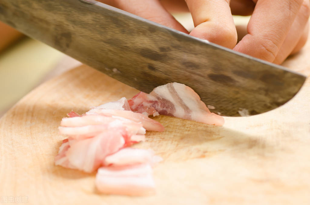 第二道美味是血脖肉做馅包饺子。脖圈肉最下面,下巴后面。老满族人很早就知道血脖中的下巴后的脖圈里,淋巴节和甲状腺丰富,不好吃、不可吃。怎么吃这半圈血脖呢?首先清除淋巴节,就是脖圈肉中灰色的黑色的疙瘩,必须用尖刀子逐个清理。将收拾好的脖圈肉中的淋巴结都剔除干净,然后就将肉剁碎,留着和饺子馅。剔除淋巴节、甲状腺之后的干净肉,剁碎,包饺子最香,油还多,香。