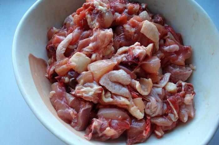 1、首先我们把鸡腿洗净剁成一厘米左右的小块,加盐5g、料酒搅匀腌制10分钟,干辣椒用开水烫1分钟捞起切段