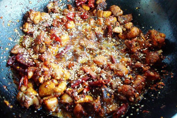 3、这道香辣鸡是家庭版的,油比较少,吃起来健康。