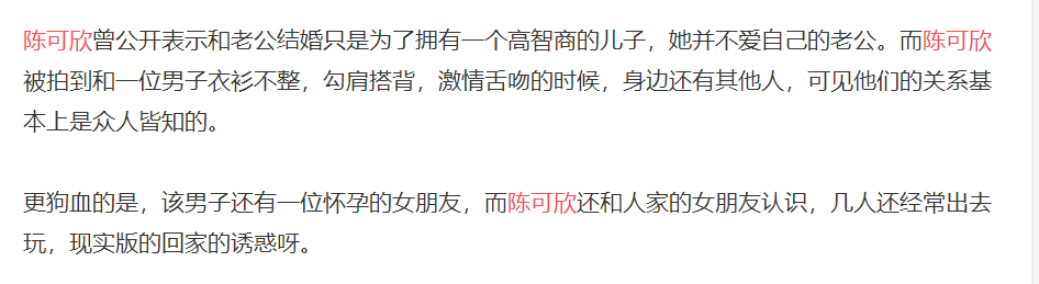 所以这次陈可欣被曝光婚内出轨,放着家里这么优秀的老公,在外面勾搭闺蜜老公,也让许多网友觉得十分不解了。