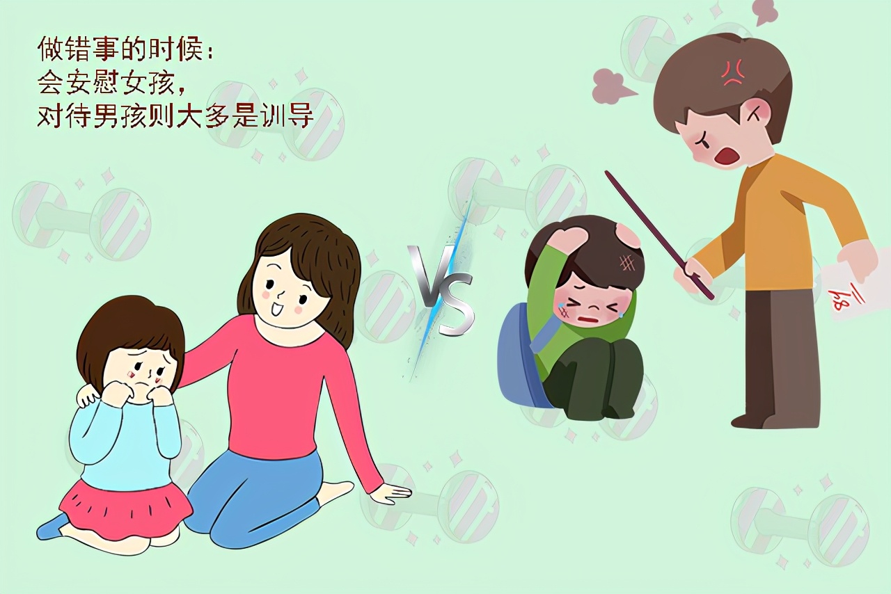 家里有儿子和女儿的父母,儿子是不是经常会犯错比较多,而且屡教不改。女儿只要父母一大声说话,眼圈立刻就红了。所以男孩犯错时,父母通常会选择严厉管教,而女孩犯错了,家长更耐心一点,即使会批评,但事后会安慰和引导。