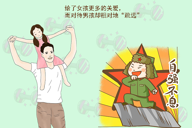 从上面7点可以看出,父母对儿子和女儿是有很大差别的,通常养女儿时更用心、更有耐心,而养男孩时则简单粗暴一些。其实这样对待男孩是有点不公平的,虽然男孩是需要独立、自己解决问题,但在幼年的时候,他们也需要父母多一些关心和疼爱,多一些理解和包容,可以让他们没那么“坚强”。