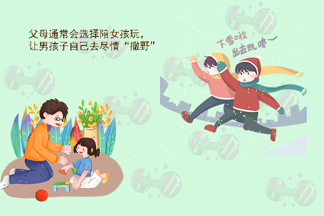 3.带娃出去玩时:父母通常会选择陪女孩玩,让男孩子自己去尽情“撒野”