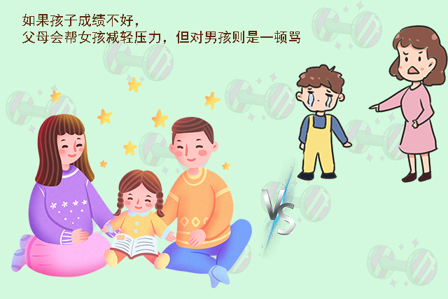 4.学习方面:如果孩子成绩不好,父母会帮女孩减轻压力,但对男孩则是一顿骂