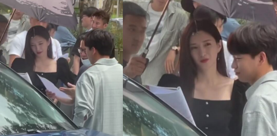 不过江疏影在短暂笑过之后马上控制好自己的情绪,当导演过来时表情迅速变严肃,拿着剧本仔细听导演讲戏。不仅如此,江疏影还时不时看向一旁的彭昱畅,似乎在思考接下来的戏怎么演。