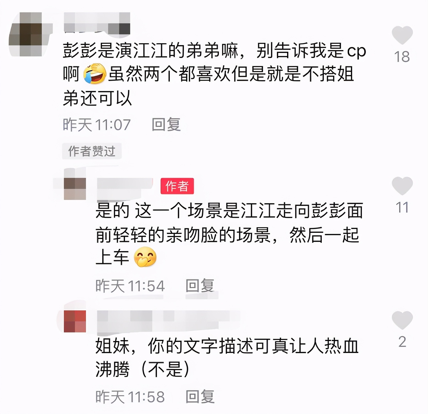 两人姐弟恋的戏份引起了不少网友关注,尤其彭昱畅此前曾多次在综艺节目中表示自己想拍吻戏。也正因此,许多网友调侃彭昱畅“终于有吻戏了”。