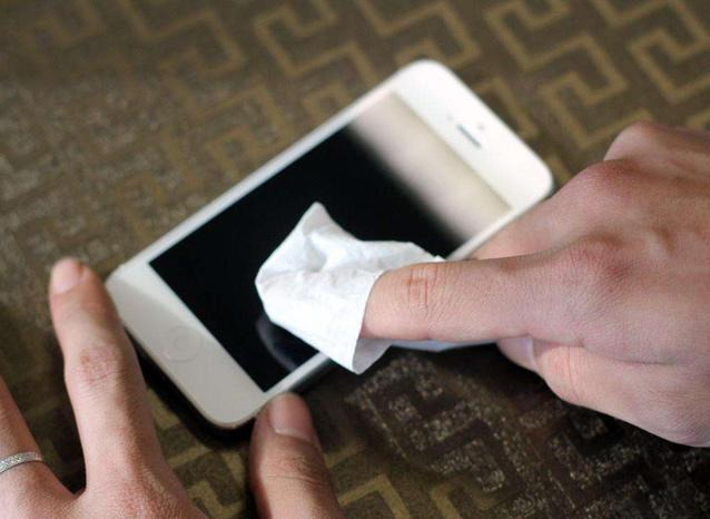 用软布擦有可能会留下痕迹,用嘴呵气之后再擦,也不太干净,更起不到杀菌的效果。有人甚至说手机屏幕上的灰尘、细菌多如厕所里的细菌,可见我们使用的手机有多脏。