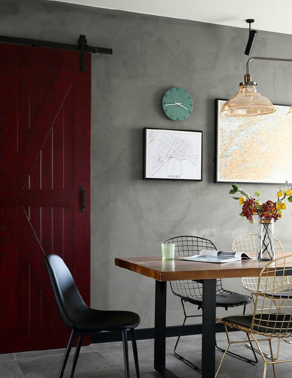 特别是用谷仓门来装饰的过道,深红色的谷仓门不仅醒目,更是大大提升了空间的设计感和档次,与众不同的配色自然也就更加个性。