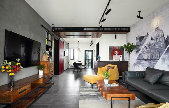 许多年轻人都会追求与众不同的个性居住环境,家里装修的时候会考虑采用工业风设计,比如设计效果有点复古的本案,水泥色乳胶漆墙面,文化石背景墙,看起来确实非常有个性。下面就一起来看看这套个性狂野的工业风装修设计案例!